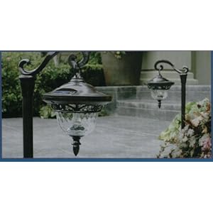 Illuminate your outdoor path and living space with this solar powered lantern that recharges in sun or shade. Featuring 3 natural white and 4 amber LEDs, this lantern brightens up any space with clear flames. The light and stand are designed like European renaissance style, constructed from durable die-cast aluminum, and features a textured bronze look. Hammered glass lens creates an elegant light pattern. All of these features create an elegant and romantic environment in your garden. Smart ON/OFF day ; night technology turns on the landscape lights at night and charge the rechargeable battery during the day. One set includes 2 solar landscape path lights and two stands, no wiring required. The height of each stand is 19.3 in.